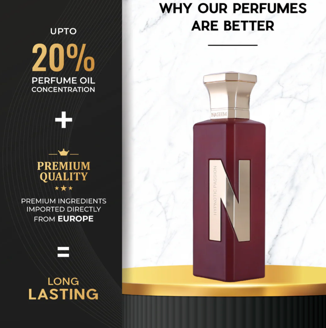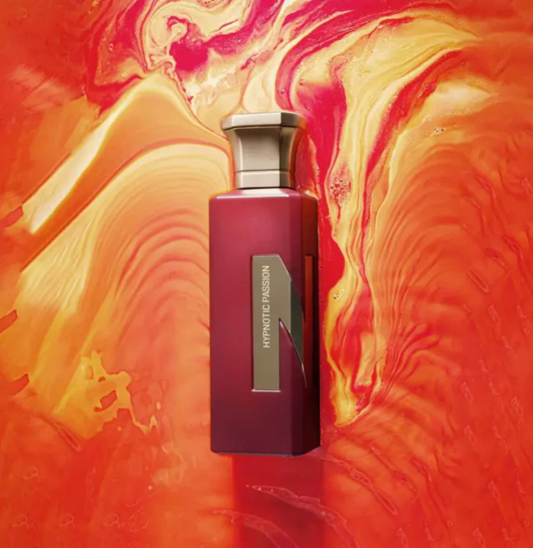 Hypnotic Passion ignites desire with luscious berries and lychee, unfolding into a rich heart of rose over a sweet cotton candy and vanilla base for a truly seductive finish.