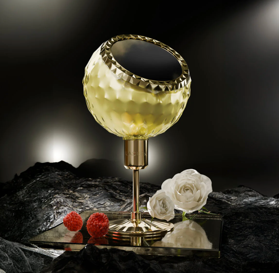 MIRAAT is a mystical fragrance that opens with juicy raspberry, blooms with jasmine and rose, and settles into warm musk and ambergris—a scent that reflects inner beauty and timeless sophistication.