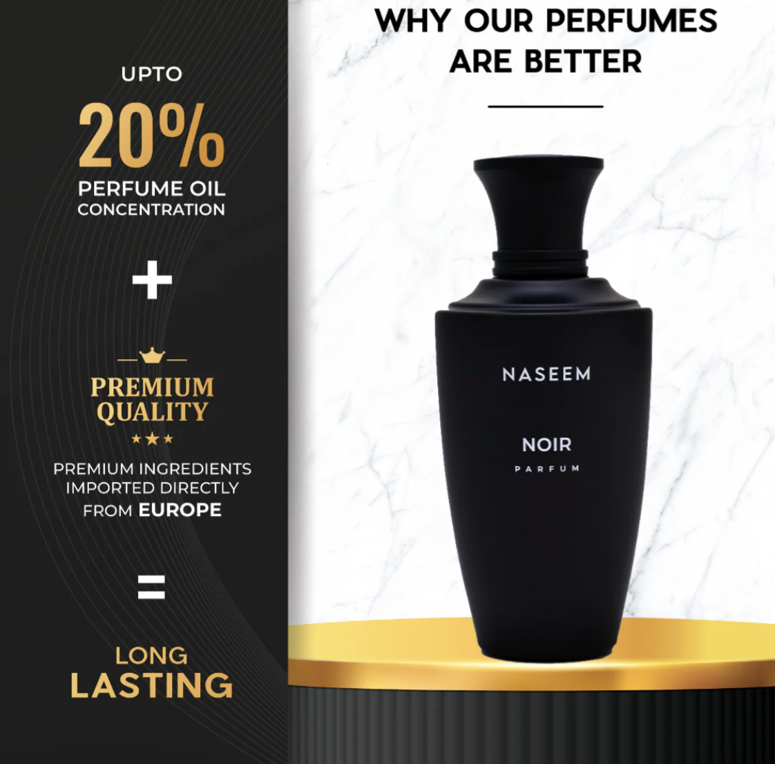 Noir— A refined woody-aquatic fragrance, opening with bright bergamot, lavender, and mandarin. Its heart blends aquatic notes, jasmine, and soft cashmere wood, while a base of amber, earthy woods, and oak moss leaves a sophisticated, lasting finish. Fresh, floral, and woody, it evokes clarity and warmth.